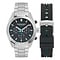 De chronograaf is je stopwatch op de pols. Handig om een training te timen, een meeting bij te houden of onderweg snel iets te meten. De drie tellers verdelen de meting overzichtelijk, zodat je niet hoeft te zoeken. Je bedient de stopwatch met de knoppen aan de zijkant, simpel en snel.