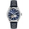 De Aston Martin TS 1 Automatic Timeless is een horloge voor liefhebbers van design met een duidelijke link naar autosport en Britse klasse. De kast van 41 mm is gemaakt van gerecycled roestvrij staal en draagt comfortabel, terwijl hij toch stevig aanvoelt. De opengewerkte blauwe wijzerplaat geeft je een kijkje op het mechaniek, waardoor je horloge niet alleen de tijd laat zien, maar ook echt leeft om je pols. De blauwe leren band met subtiel patroon maakt de uitstraling compleet en zorgt voor een luxe, verzorgde look.