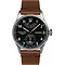 De bruin leren band van kalfsleer is voorzien van zwarte stiksels en past perfect bij de stoere uitstraling van het horloge. De 22 mm brede band sluit stevig met een zilverkleurige gesp en past op vrijwel elke pols dankzij de rechte bandaanzet.