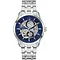 De skeleton wijzerplaat maakt het automatische uurwerk zichtbaar en benadrukt de klassieke horlogekunst. De verfijnde markers en afwerking geven het horloge een elegante uitstraling die zowel zakelijk als casual gedragen kan worden.