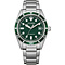 De Citizen NJ0220-52X is een automatische herenhorloge met een opvallende groene wijzerplaat en een sportieve stalen uitstraling. Het mechanische hart is het kaliber 8210 met 40 uur gangreserve. Je draagt dus een horloge dat zichzelf oplaadt door jouw beweging, zonder batterij en met dat fijne automatengevoel. De kastmaat van 38 mm is ideaal als je een moderne, draagbare maat zoekt die niet te groot is, maar wel karakter heeft. De groene kleur geeft net dat beetje extra, zonder schreeuwerig te worden.