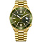 De Citizen NJ0232-53X is een automatische horloge met een luxe goudkleurige uitstraling en een stoere kaki wijzerplaat. Dit model voelt premium door de combinatie van een sportieve draaibare ring, een stevige stalen band en een glaskeuze die je normaal in hogere segmenten ziet. Binnenin tikt het kaliber 8210 met een gangreserve van 42 uur. Je draagt dus een echte automaat die op spanning blijft door beweging, zonder batterij. De kast is 40 mm en de hoogte is 12.5 mm, waardoor het horloge stevig oogt maar nog steeds goed draagbaar blijft.