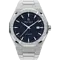 De combinatie van een sprankelende zilverkleurige kast en band met de diepblauwe wijzerplaat creëert een krachtig contrast dat perfect past bij zowel zakelijke als casual outfits. Het horloge is ontworpen om op te vallen zonder zijn elegante karakter te verliezen.