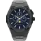 De matte frosted bewerking van de kast en band zorgt voor een subtiele schittering die lijkt op fijne diamantdeeltjes. Het diepe zwart geeft dit horloge een ingetogen luxe uitstraling die perfect contrasteert met de fonkelende blauwe wijzerplaat.