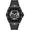 Met een kastdiameter van 44 mm en een dikte van 12,8 mm heeft dit horloge een robuuste uitstraling. Zowel de kast als de band zijn vervaardigd uit hoogwaardig roestvrij staal, afgewerkt in diep zwart voor een strak, tijdloos karakter.