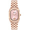De zachte roze wijzerplaat geeft een elegante gloed die prachtig contrasteert met het warme roségoud. De ovale kast houdt de lijnen sierlijk en tijdloos, terwijl de vaste bezel het ontwerp een strak profiel geeft. Dit model mixt moeiteloos met roségouden sieraden of een minimalistische outfit.
