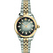 De stalen kast voelt solide aan en beschermt het binnenwerk optimaal. De zwarte wijzerplaat zorgt voor een warme en luxe uitstraling, perfect in balans met de tweekleurige band. De goudkleurige accenten op de wijzers en indexen versterken het elegante karakter van dit horloge.